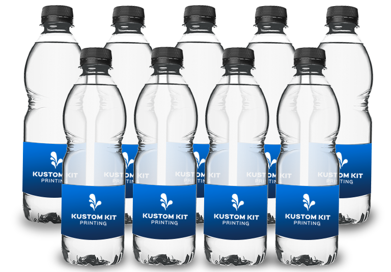Our water bottles are customised with a full colour printed wrap and come in two sizes, 300ml or 500ml. We offer standard twist or pullup sports cap on both sizes and 10 differnt colour caps for twist and 5 for the pull up sports cap.