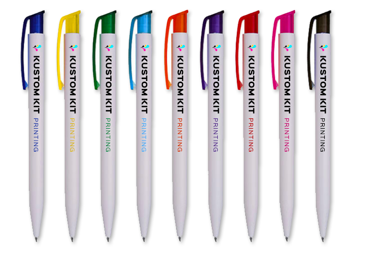 We offer a range of plastic, metal, single colour and trimmed pens. Starting from quantities as low as 50 pieces we can offer single to four colour print on the majority of the pens we offer and our trimmed pens come in 8 colours, perfect for matching up with your logo.